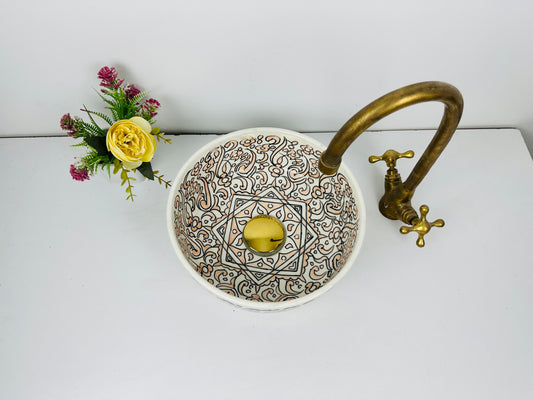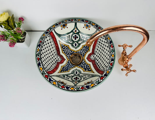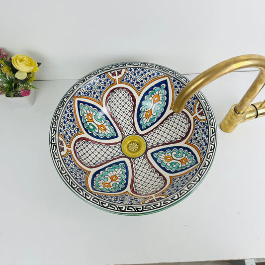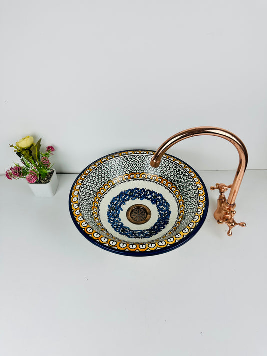 Traditional Oasis: Handcrafted Ceramic Sink with Exquisite Moroccan Design