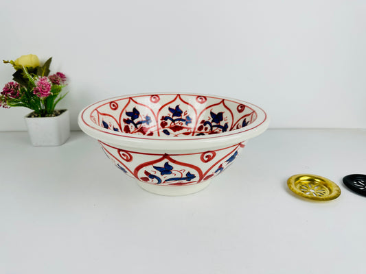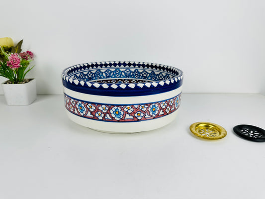 Crimson Oasis: Handcrafted Ceramic Sink with Red and Blue Moroccan Design