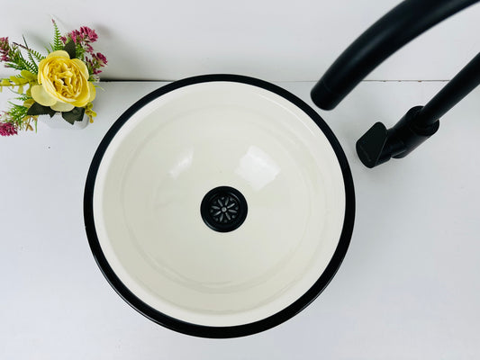 Classic Contrast: Handcrafted Ceramic Sink in Timeless Black and White Design