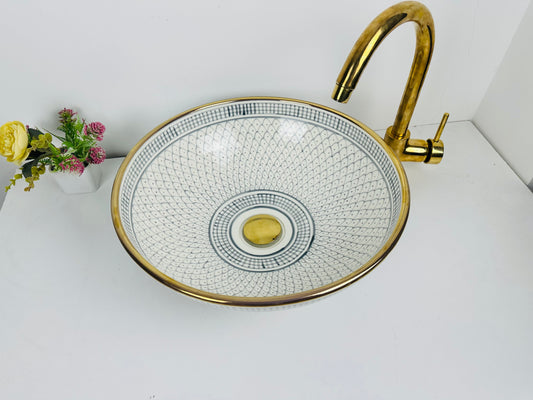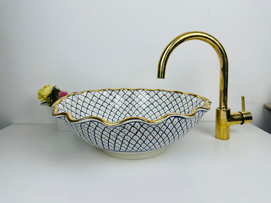 Artisanal Handcrafted Ceramic Sink with Natural Finishes and Gold Trims