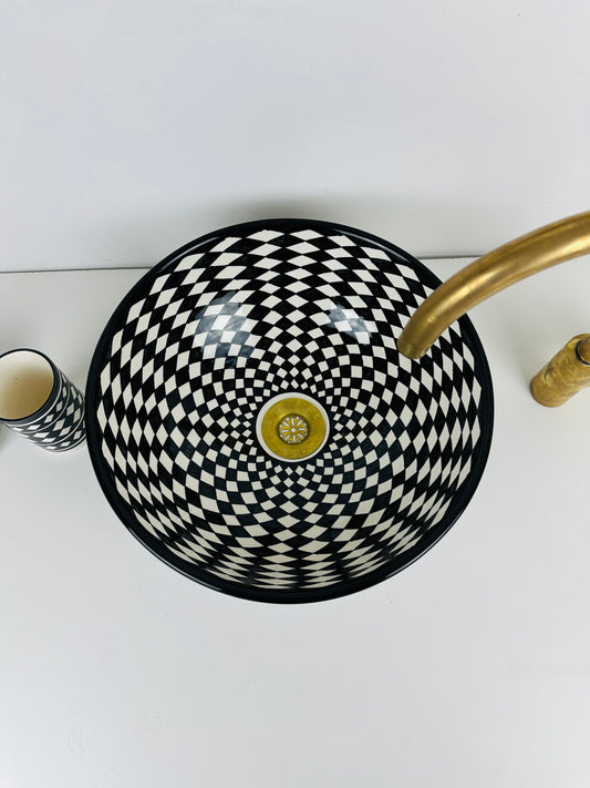 Monochromatic Round checkerboard sink 100% handmade and hand painted