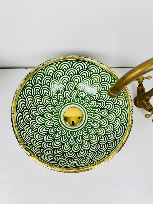 Green heritage Elegance: Handcrafted Traditional Ceramic Sink with brass