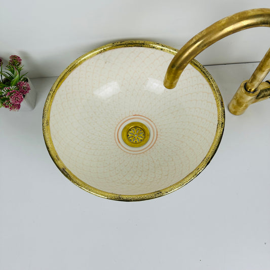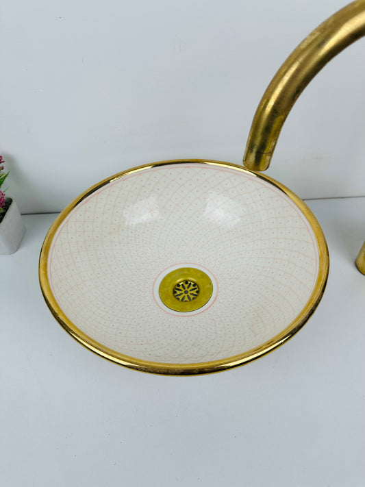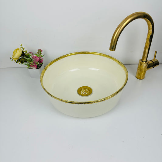 14K gold Creamy Comfort: Handcrafted Ceramic Sink in Elegant Cream color