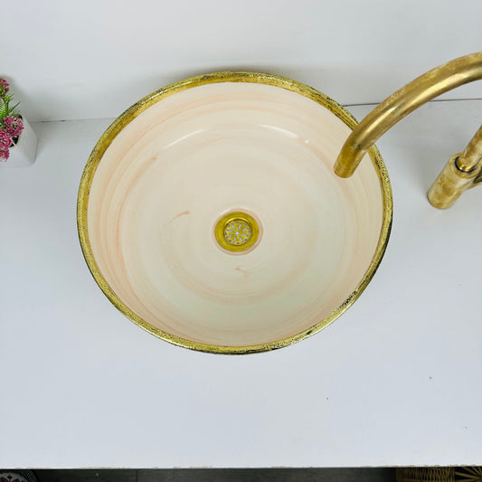 Sunrise Serenity: Handcrafted Ceramic Sink in Light Salmon and 14K gold