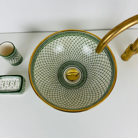 Golden Verde: Handcrafted Ceramic Sink in Green with 14k Gold