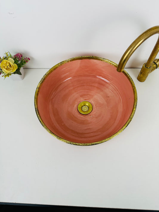 14K gold Peachy Perfection: Handcrafted Ceramic Sink in Peach Color