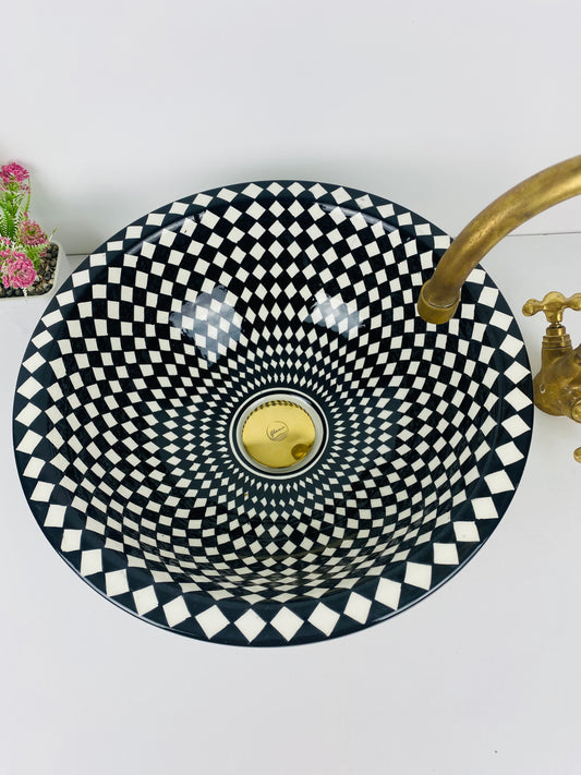 Checkerboard style: Handcrafted Black and White Mosaic Ceramic Sink