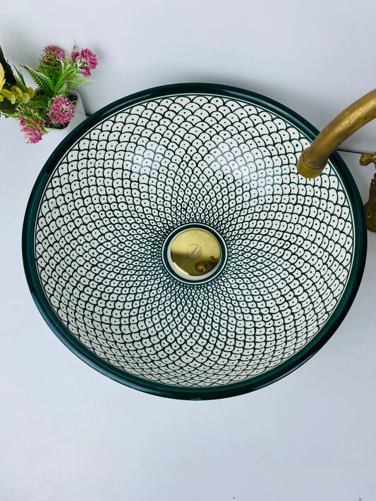 Emerald Opulence: Handcrafted Ceramic Sink with Brass Accents