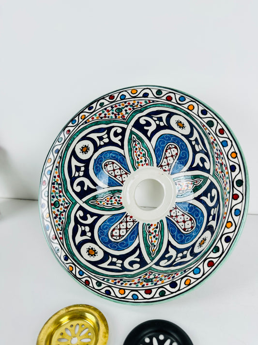 Celestial Bloom ceramic Washbowl sink, Traditional Moroccan Design