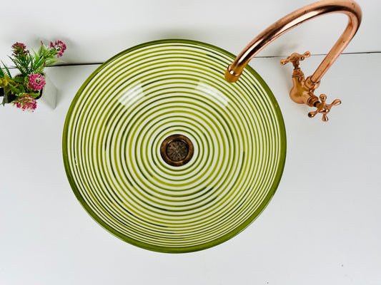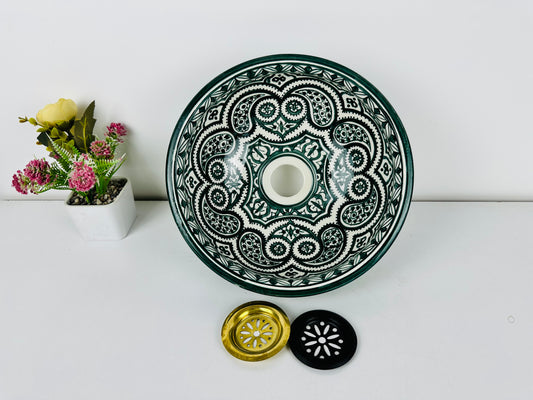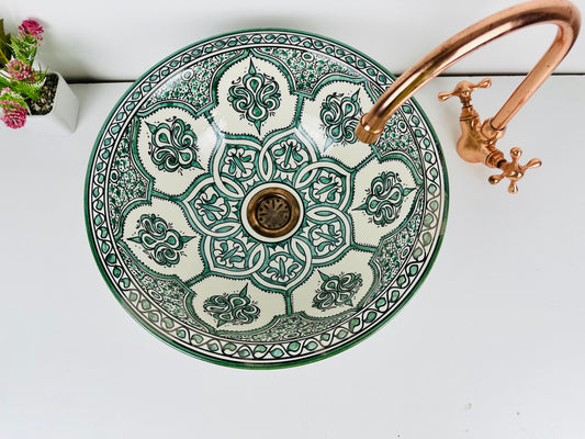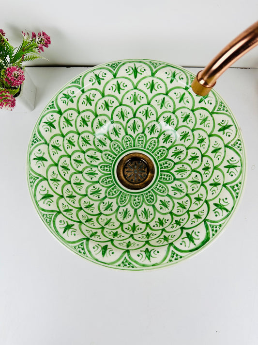 Moroccan Meadow: Handcrafted Ceramic Sink with Traditional Green Moroccan Design