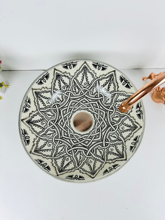 Moroccan Mist: Handcrafted Ceramic Sink with Gray Moroccan Design