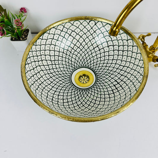 14K gold and Verdant Charm: Handcrafted Ceramic Sink in Rich Green Ton