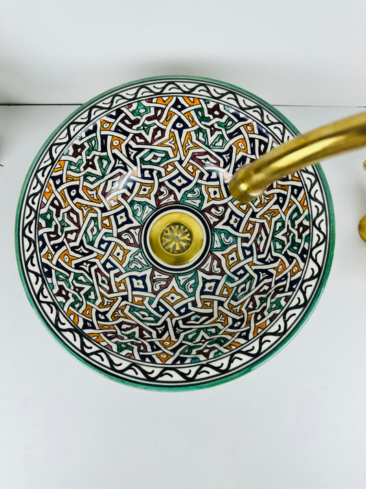 Nature's Palette: Handcrafted Ceramic Sink with Green and Multicolored Accents