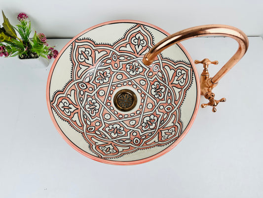 Peach Blossom: Traditional Handcrafted Ceramic Sink 100% hand painted