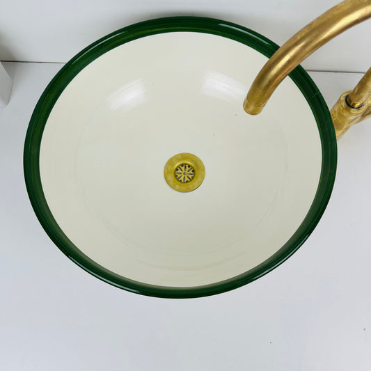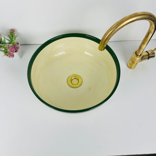 Round Elegance: Handcrafted Ceramic Sink with Green Top Finish