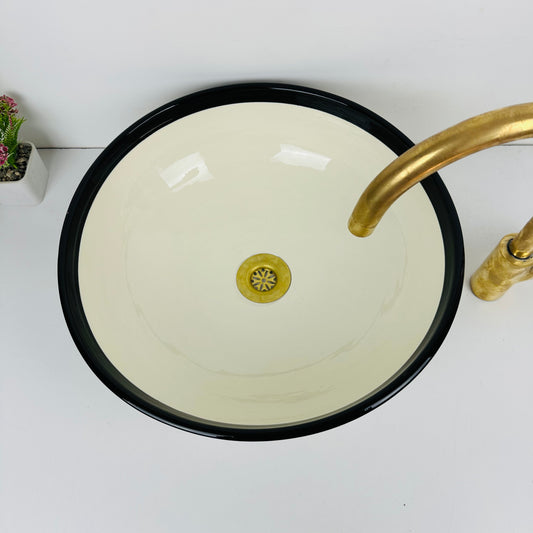 Round Elegance: Handcrafted Ceramic Sink with Black Top Finish