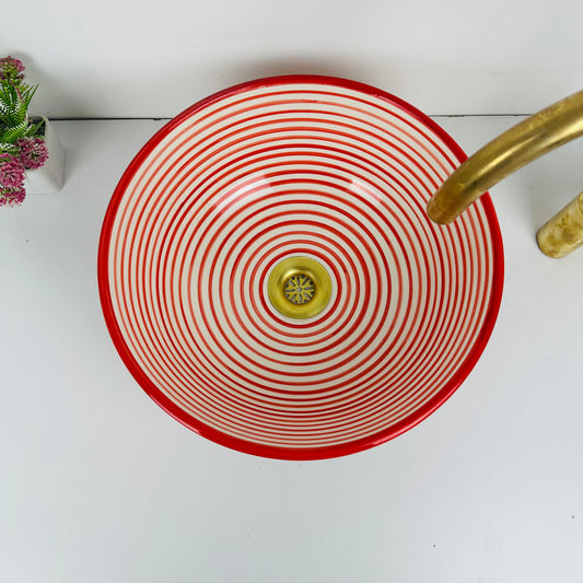 Red & White Moroccan Vessel Sink – Artisanal Elegance