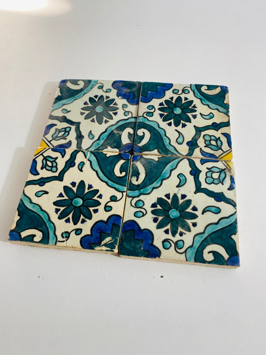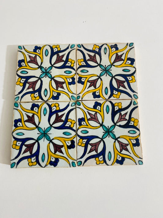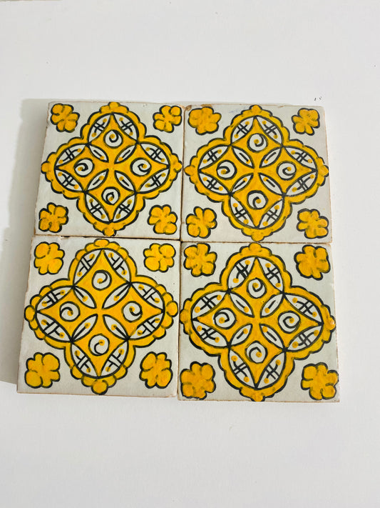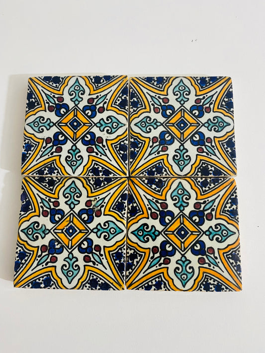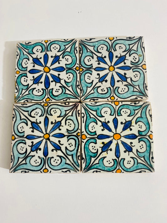 Hand-Painted Moroccan Ceramic Tiles – Blue & Yellow Floral Design