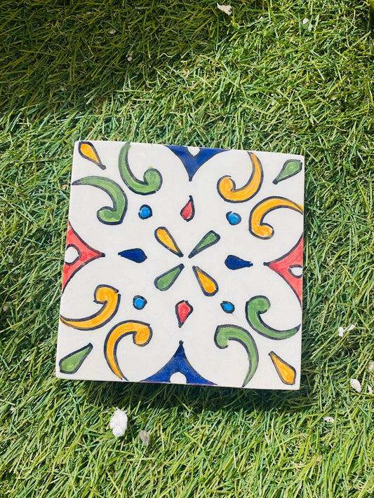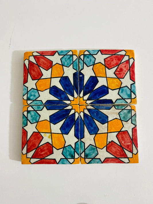 Hand-Painted Moroccan Floral Diamond Tile Set