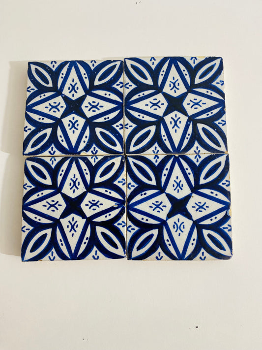 Hand-Painted Moroccan Blue Floral Cross Tile Set
