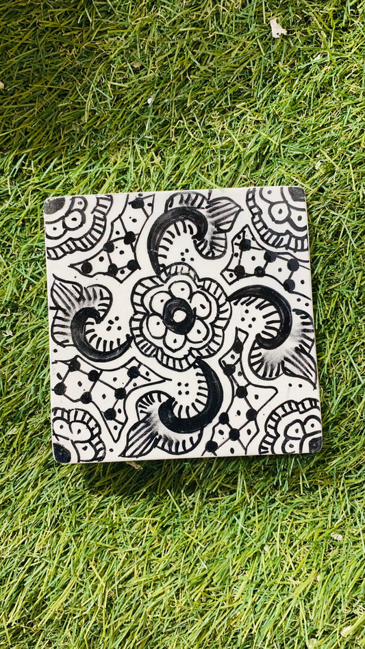Hand-Painted Moroccan Ocean ZEBRA Waves Tile