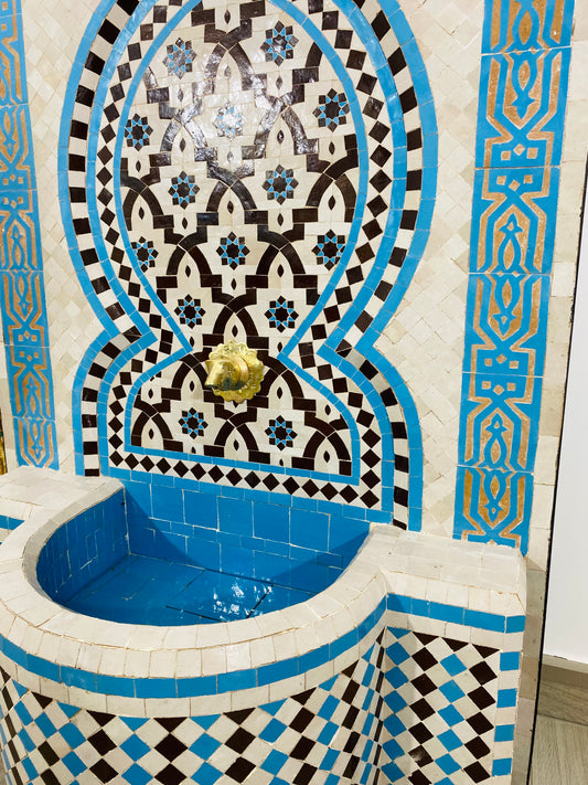 Elegant Moroccan Zellige Fountain – Sky Blue & Earthy Brown Mosaic