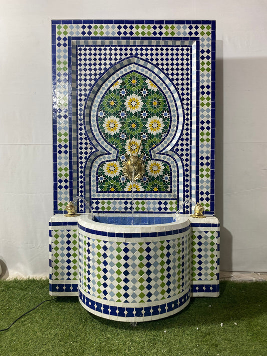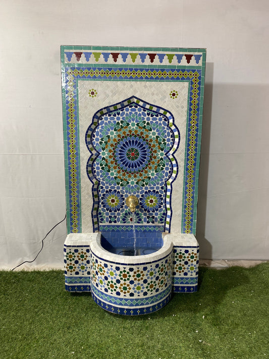 Alhambara mosaic fountain 100% handmade, unique Moroccan luxury wall decor with tiles design, Large mosaic wall decor 220cm/150cm
