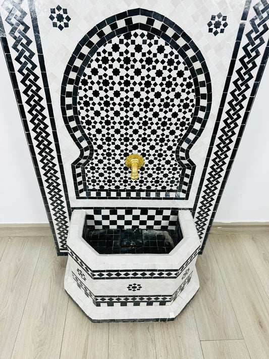 Moroccan Zellige Fountain – Timeless Black & White Elegance