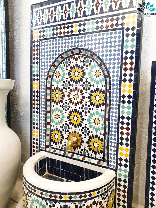 Moroccan Zellige Fountain – Vibrant Mosaic Elegance water fountain