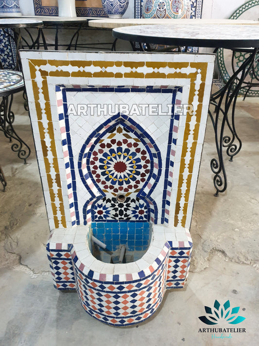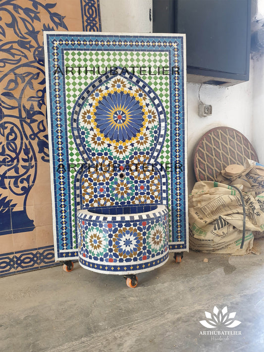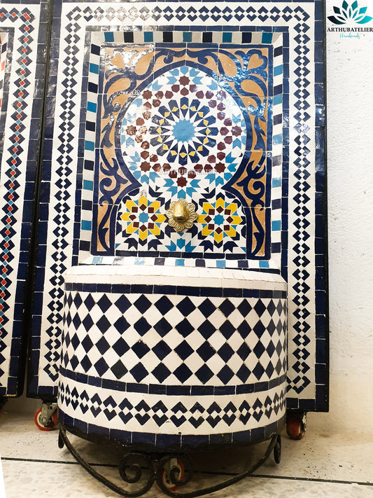 Handmade Moroccan Zellige Fountain – Authentic Mosaic Water Feature