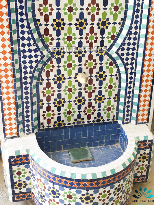 Handcrafted Moroccan Zellige Fountain – Traditional Mosaic Design