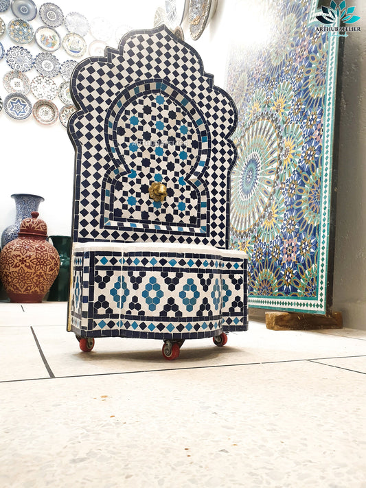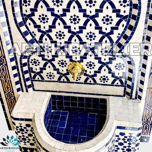 Moroccan Zellige Mosaic Fountain – Timeless Blue & White Elegance