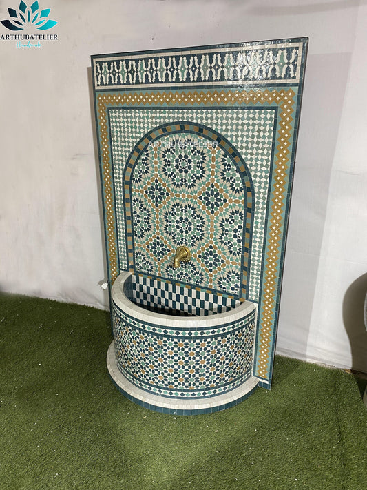 Handmade Moroccan Zellige Fountain – Blue & Green Mosaic Elegance