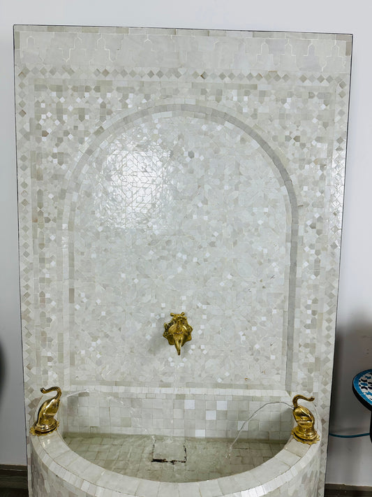 Majestic White Moroccan Fountain with Triple Brass Faucets