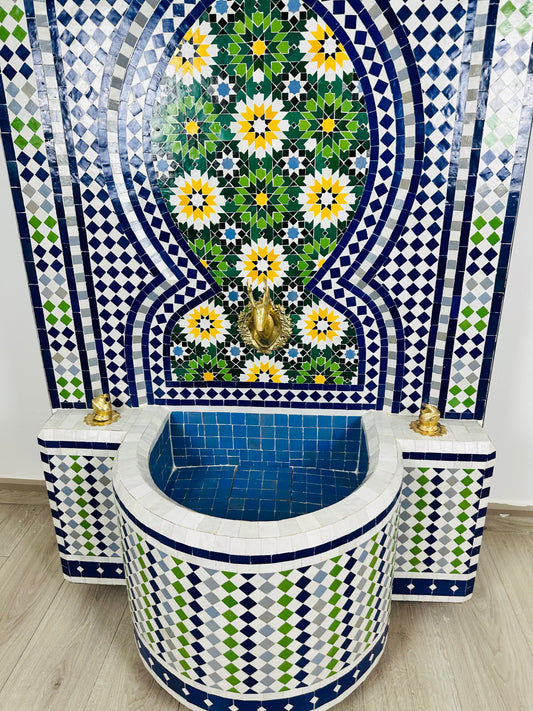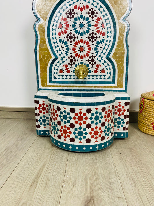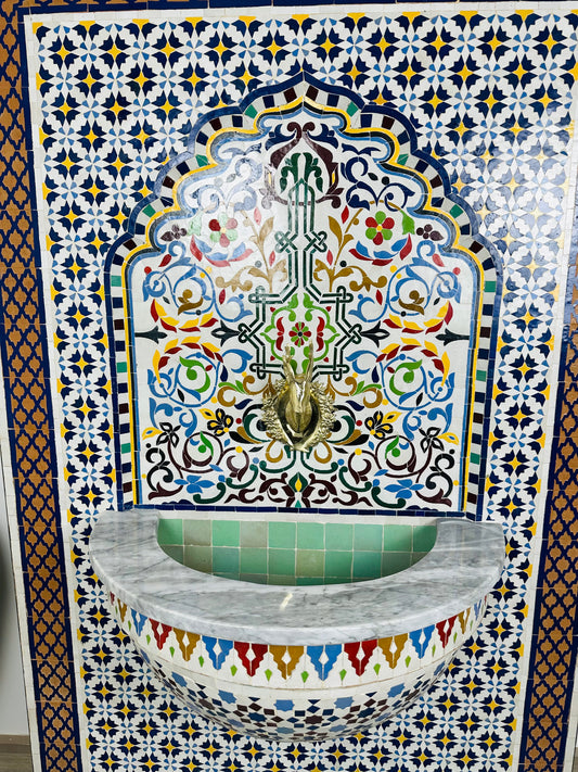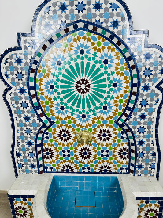Handcrafted Moroccan Zellige Fountain – Vibrant Elegance