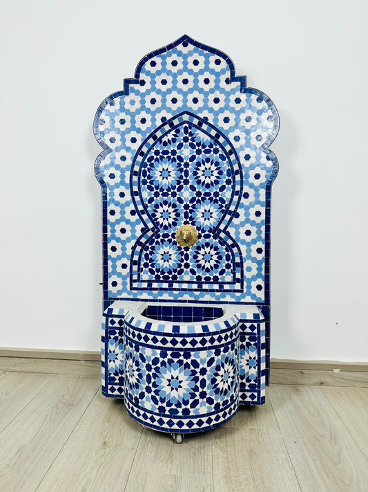 Handcrafted Moroccan Zellige Fountain – Classic Blue & White Elegance
