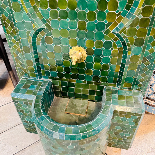 Exquisite Moroccan Green Zellige Fountain – A Statement of Elegance