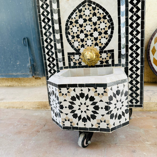 Timeless Moroccan Black & White Zellige Fountain – A Symbol of Elegance