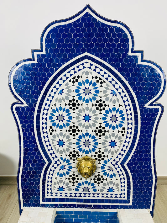 Handmade Moroccan Blue Zellige Fountain – A Majestic Blend of Art & Functionality