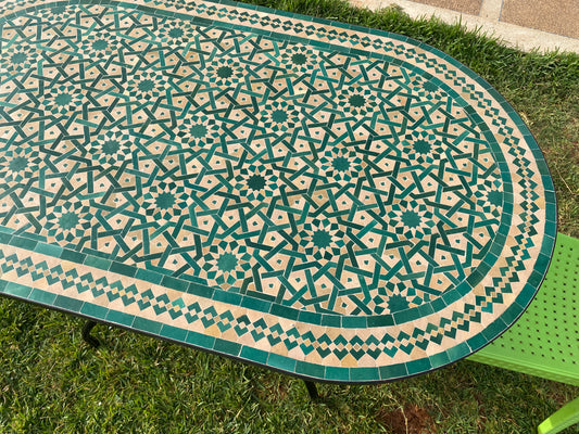 Handmade Moroccan Zellige Mosaic Table – Classic Green Elegance