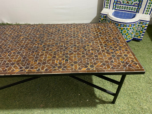 Handmade Moroccan Zellige Mosaic Table – Brown & Earth-Toned Geometric Elegance