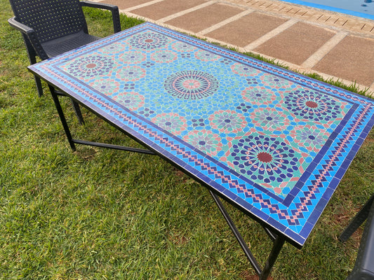 Blue & Green Zellige Mosaic Table – A Timeless Work of Art