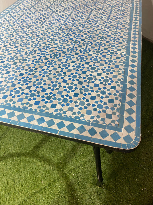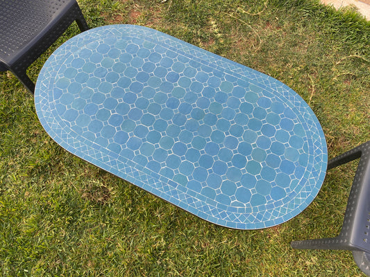 Handmade Moroccan Zellige Mosaic Table – Ocean Blue Elegance