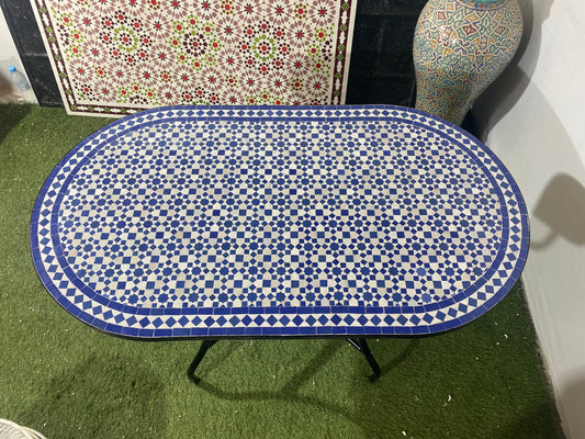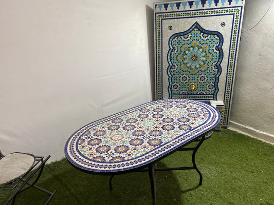 Handmade Moroccan Zellige Mosaic Table – Oval Multicolor Design