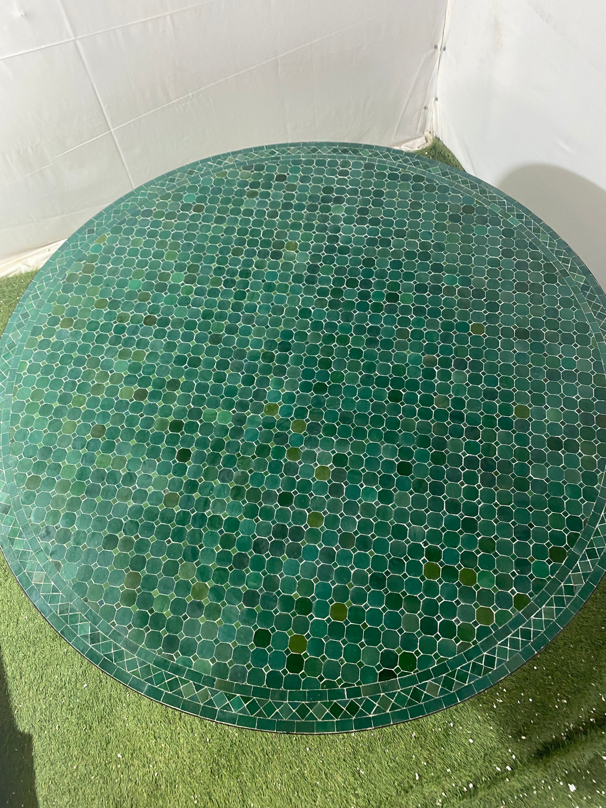 Infunda a su espacio un toque de elegancia atemporal con esta impresionante mesa de mosaico hecha a mano. El intrincado patrón de mosaico hexagonal en un exuberante verde esmeralda evoca una sensación de naturaleza y tranquilidad, lo que la convierte en una pieza central perfecta tanto para interiores como para exteriores. Los tonos verdes intensos contrastan maravillosamente con la elegante base de hierro forjado negro, lo que garantiza durabilidad y estilo en una pieza exquisita.