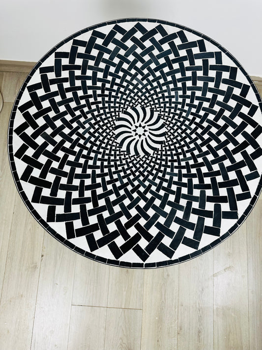 Handmade Moroccan Zellige Mosaic Table – Black & White Elegance