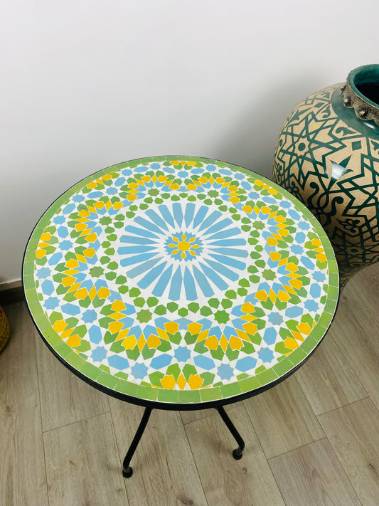 Handmade Moroccan Zellige Mosaic Side Table – Fresh & Vibrant Charm