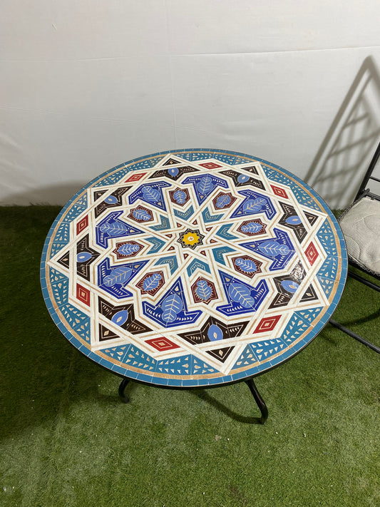 Handmade Moroccan Zellige Mosaic Table – Majestic Blue Starburst