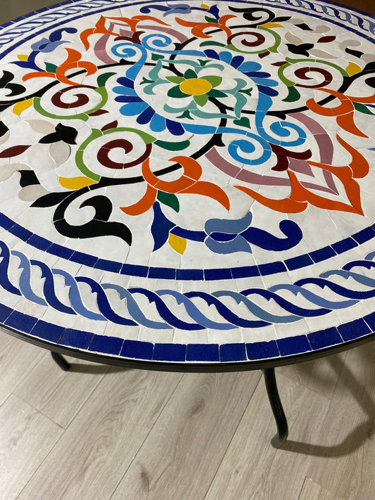 Handmade Moroccan Zellige Mosaic Table – Sophisticated navy & Beige Elegance