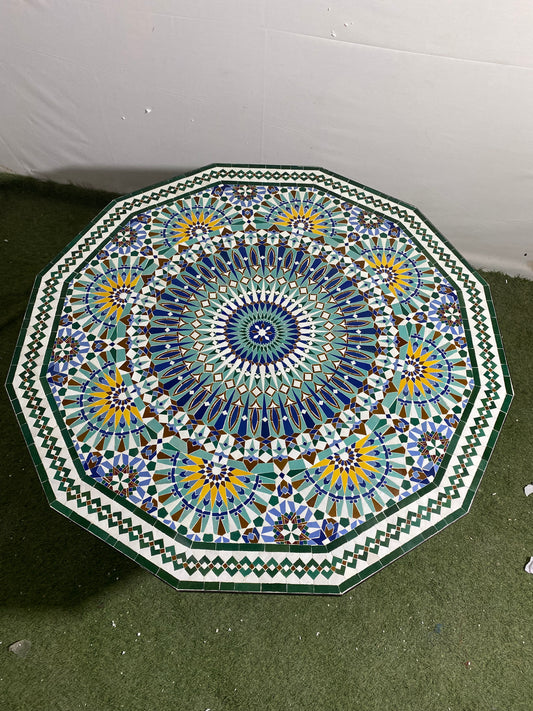 Handmade Moroccan Zellige Mosaic Dining Table – Grand Royal Elegance